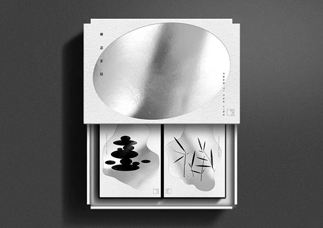 漢字具有的圖形化即圖像化特質,拓寬了漢字在茶葉包裝設計中的應用表現方法。與一般插畫形式的圖形不同,漢字的圖形會意在于字體的圖像化變形,尤以筆畫部首的藝術表現為主。成都包裝廠在進行茶葉包裝設計時,要對產品品牌文化有一個深刻了解,找出具有品牌漢字本質特征的意象圖式,將其與漢字進行結合,形成字畫同體的包裝意境。在蟬隱齋的白茶禮盒包裝中,設計師選取了“竹、石”兩種意象圖示與漢字結合,讓整體包裝畫面呈現出“曲徑通幽處,禪房花木深”的意境感。品牌的中“蟬”字音同“禪”,給人一種淡泊寧靜的白描感,這種感覺與玉竹所蘊含的禪修寓意所耦合,竹葉與筆畫部首的結合更是表現了禪茶一味的氛圍感,圓石寓意的溫潤與自然樸琢,也傳達茶本身的內涵與產品的特質,圓石形態的字體形式亦表現了中國漢字文化的包容并蓄。
